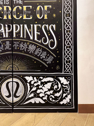 From the end of 2018 till 2019, I worked closely with lululemon HK to create seasonal mural art in their stores all over Hong Kong. The mural is typically done on a chalkboard like surface with permanent white and gold markers. The theme varies, but mainly revolves around sports and sports mentality.